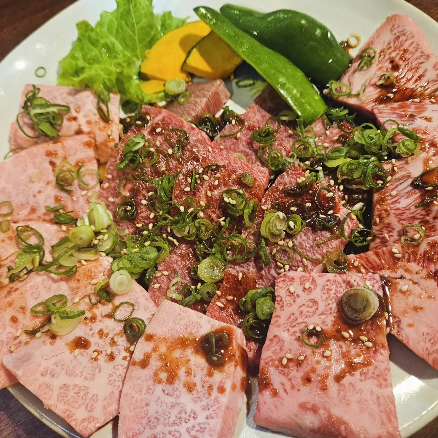 艶やかなサシが美しい黒毛和牛大皿盛り「カルビロースDX」🥩✨